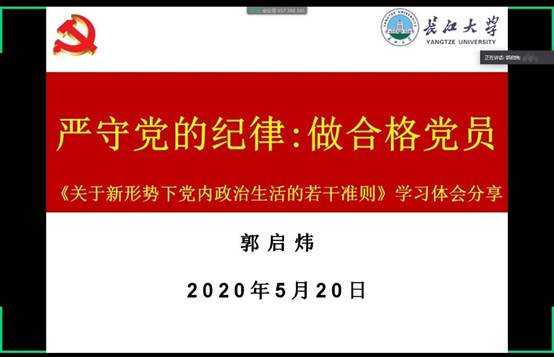 (通讯员 罗炎鑫 艾林)5月20日晚,电信学院召开了《关于新形势下党内政治生活的若干准则》的学习分享会,会议由公司党委副书记、分党委纪检委员郭启炜主持,各分党委书记,全体员工党员以及入党积极分子参加了此次会议。