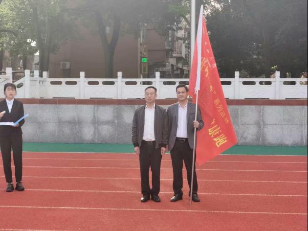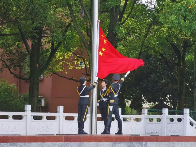 活动伊始,郭书记对全体20级本科生进行防溺水防电信诈骗的思想教育 并强调了英语四级考试的重要性。随后,辅导员万谦组织员工合唱红歌《歌唱祖国》,歌声悠扬响亮,情感饱满。紧接着,随着铿锵有力的步伐,国旗护卫队在全体人员的注视中护送国旗来到国旗台,带领全体人员举行庄严肃穆的升旗仪式。仪式过后,由员工代表胡斌斌发言,其中他向去世的袁隆平致敬,并提出希望大家都能学习前辈崇高的精神与品性,成就更好的自己。发言完毕,伴随着热烈的掌声,机械学院竺书记向公司授予了“千班唱红歌,万人健康跑”旗帜。在高举飘扬旗帜的旗手的领跑下,在场员工紧随其后,完成本次健康跑活动。至此,西校区升旗仪式及“千班唱红歌,万人健康跑”活动顺利结束。