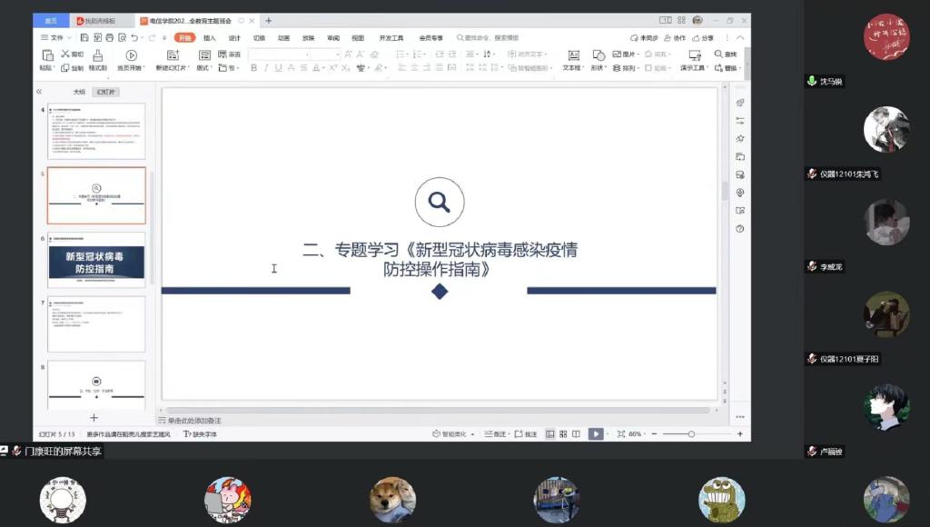 会上,辅导员、班主任传达了学校有关春季开学员工返校工作会议精神,对提前返校、延迟返校员工申请审批手续办理、员工返校行程安排报告等事项提了要求,强调了员工返校前、返校途中、返校后的安全注意事项,并开展了“七防”安全教育和诚信考试教育;组织全体同学共同学习了国务院联防联控机制综合组2023年1月7日印发的《新型冠状病毒感染疫情防控操作指南》, 通过学习文件内容,帮助同学们对当前的疫情防控有了更全面的认识。