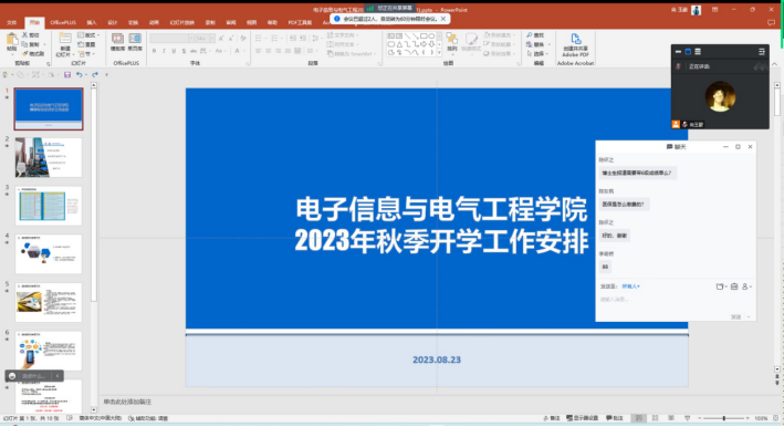 2023年8月23日15时,伟德bv1946官网召开了2023年秋季研究生开学主题班会,通过线上会议的方式,分别在研究生新生班级和老生班级召开。两场会议由学院研究生会主席尚玉豪同学主持,康玮辅导员主讲,对秋季开学的工作安排和返校注意事项进行详细说明,为顺利开展返校工作做好充分准备。