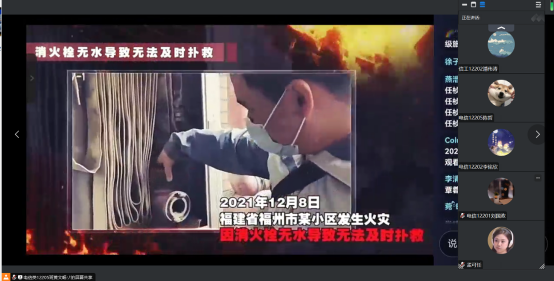 本次直播授课,从消防法律法规和消防安全意识、学校家庭安全防火入手,阐述了学习消防知识和掌握初期火灾扑救的重要性,介绍了日常防火灭火常识。