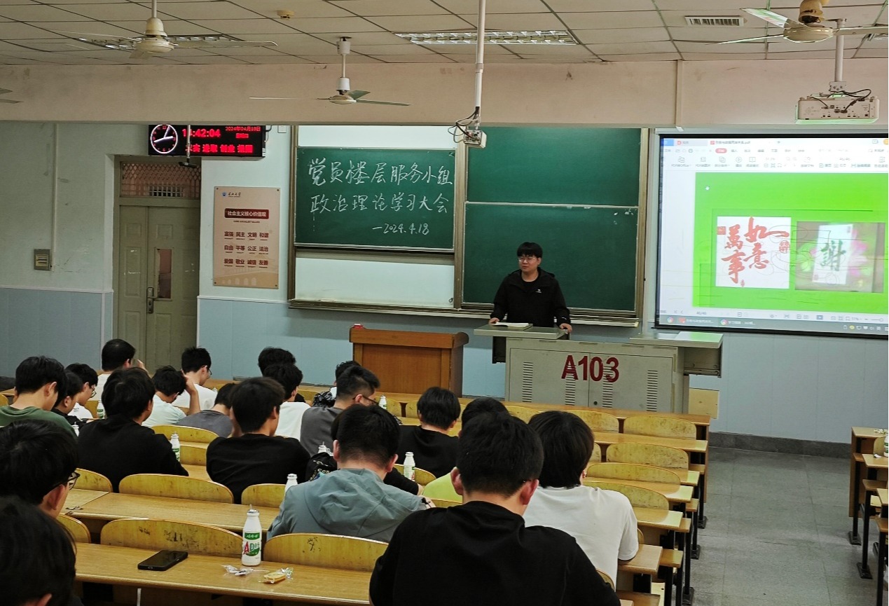 (通讯员 向万朋 董菲 钟城钰)4月18日下午,伟德bv1946官网楼层服务小组在13教A103组织开展政治理论学习。本次学习活动由2022级本科生栾志强主讲,2021级、2022级、2023级楼层服务小组全体成员参与了此次学习。