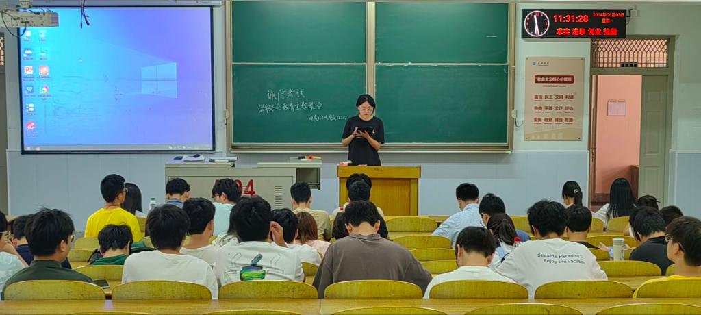 一、二年级诚信教育主题班会。各班级主题班会活动形式多样,主要通过召开学风建设教育、法纪教育和反诈等安全教育班团会,组织诚信宣传教育通过讲故事、讨论、观看宣传片播放PPT等形式。