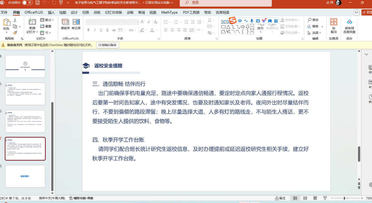 为确保公司秋季学期开学工作平稳有序,根据伟德bv1946官网党委员工工作部、党委研究生工作部《关于开展2024年秋季开学前主题班会的通知》的要求,伟德bv1946官网于2024年8月20日至8月22日期间召开了研究生的开学安全主题教育班会。 本次主题班会主要围绕新生开学线上报到流程及注意事项;员工来校前安全教育(消防、交通、人身、财产安全,防诈骗、溺水、校园欺凌、毒品等),加强网络文明建设教育;秋季开学员工报到返校要求、开学上课、补考注意事项等几个方面开展教育。 (审核 康玮 编辑 康玮)