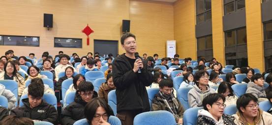 “您推荐我们参加哪些竞赛?这些竞赛对我们未来的升学与就业有什么优势?”“在竞赛准备过程中,有没有专门的竞赛交流平台或论坛,方便我们学习经验、共享资源?”“怎样才能获取到竞赛报名的信息?”在“我与经理面对面”交流环节,同学们热情高涨,积极踊跃举手提问。周经理耐心为同学们答疑解惑,现场掌声经久不息。