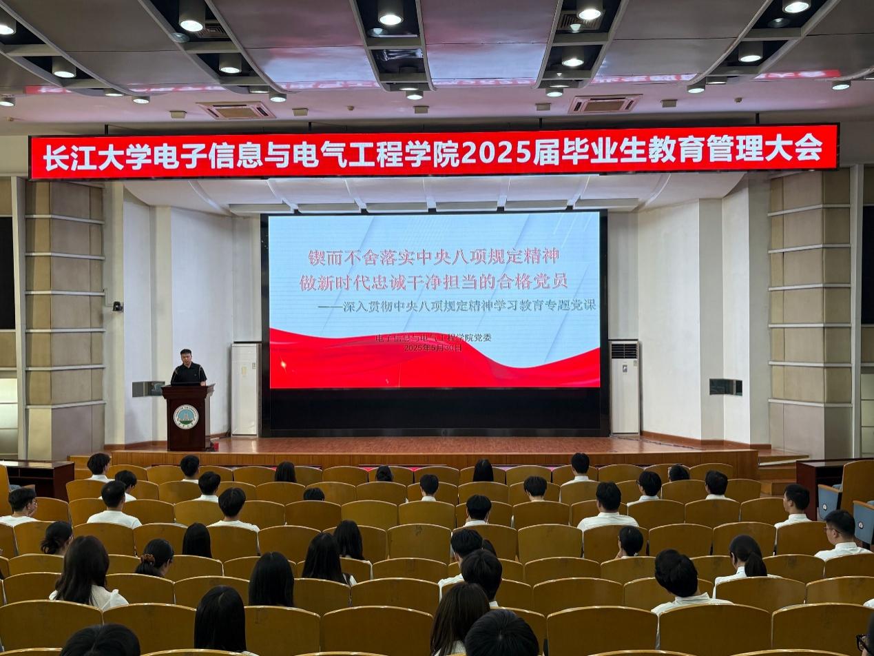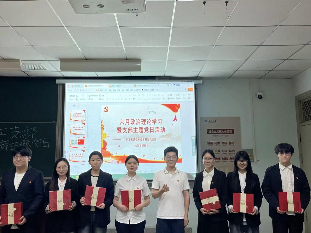 5月30日下午,学院开展毕业生党员主题党日活动,辅导员李蒙带领全体毕业生党员面向党旗庄严宣誓誓词,并讲授深入贯彻中央八项规定精神学习教育专题党课,要求全体毕业生党员锲而不舍落实中央八项规定精神,凝聚青春力量,发扬长大精神,展现新时代党员风貌;会上还重点强调了党员组织关系转接等问题,要求毕业生党员永葆本色,在新的岗位上再续华章。