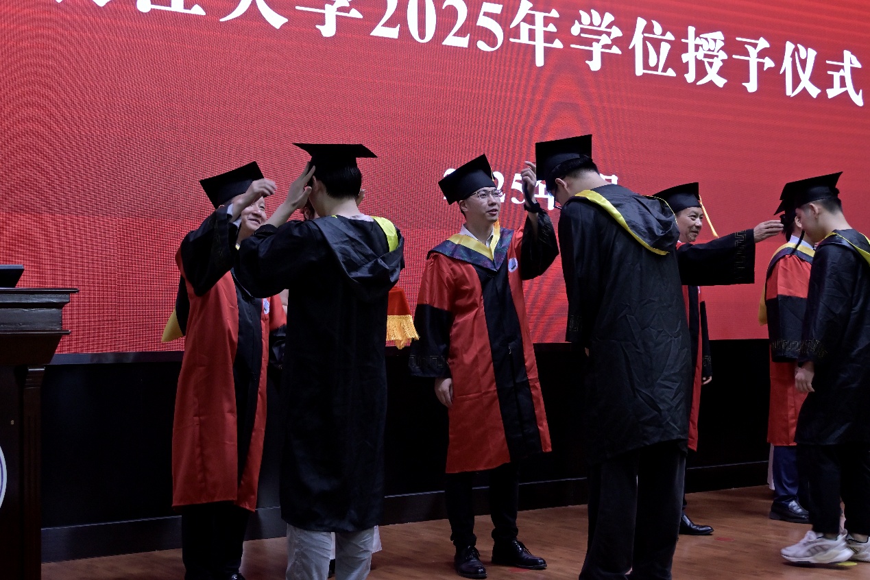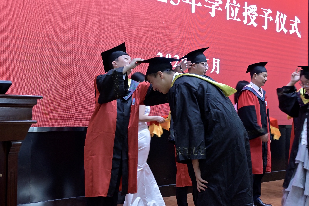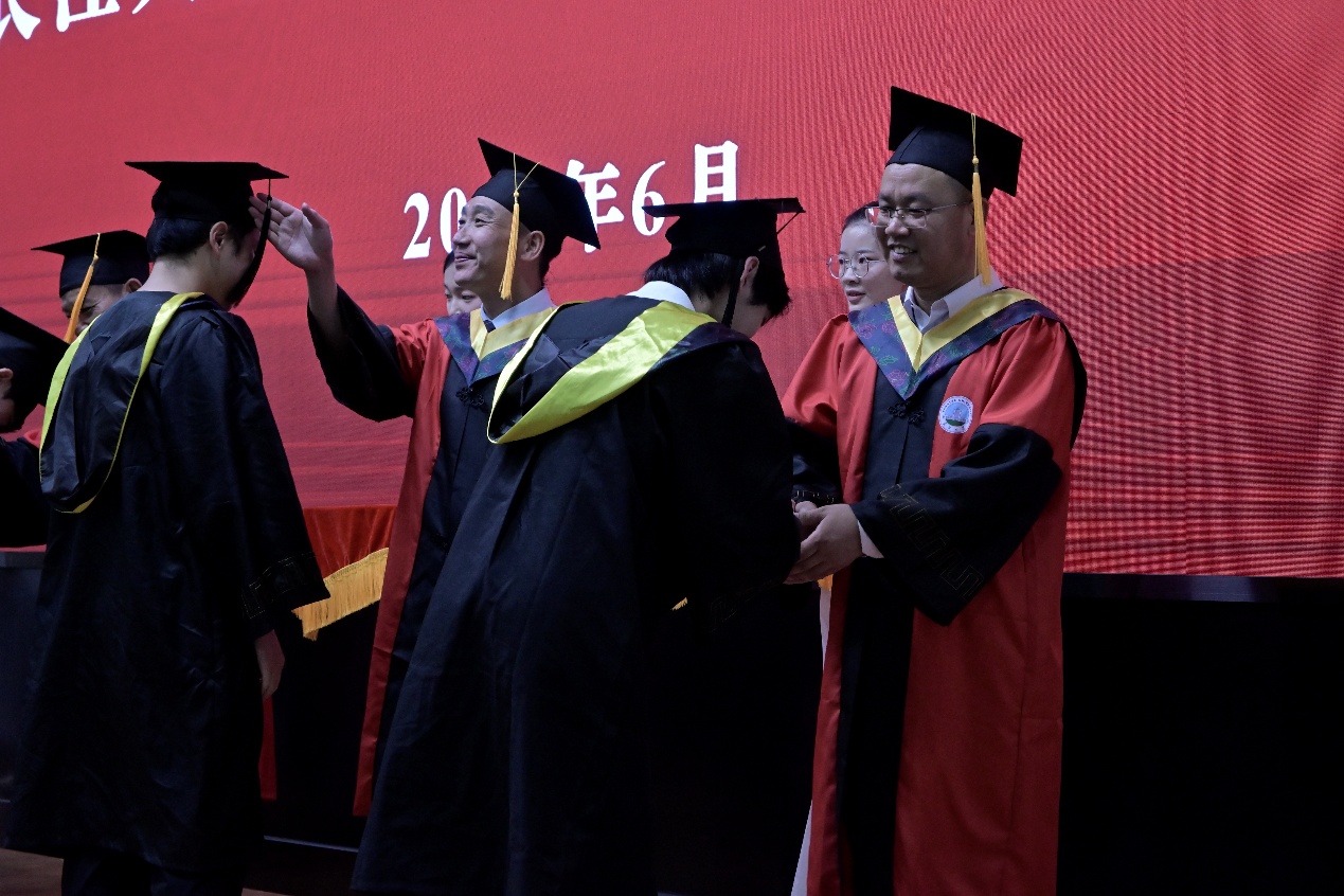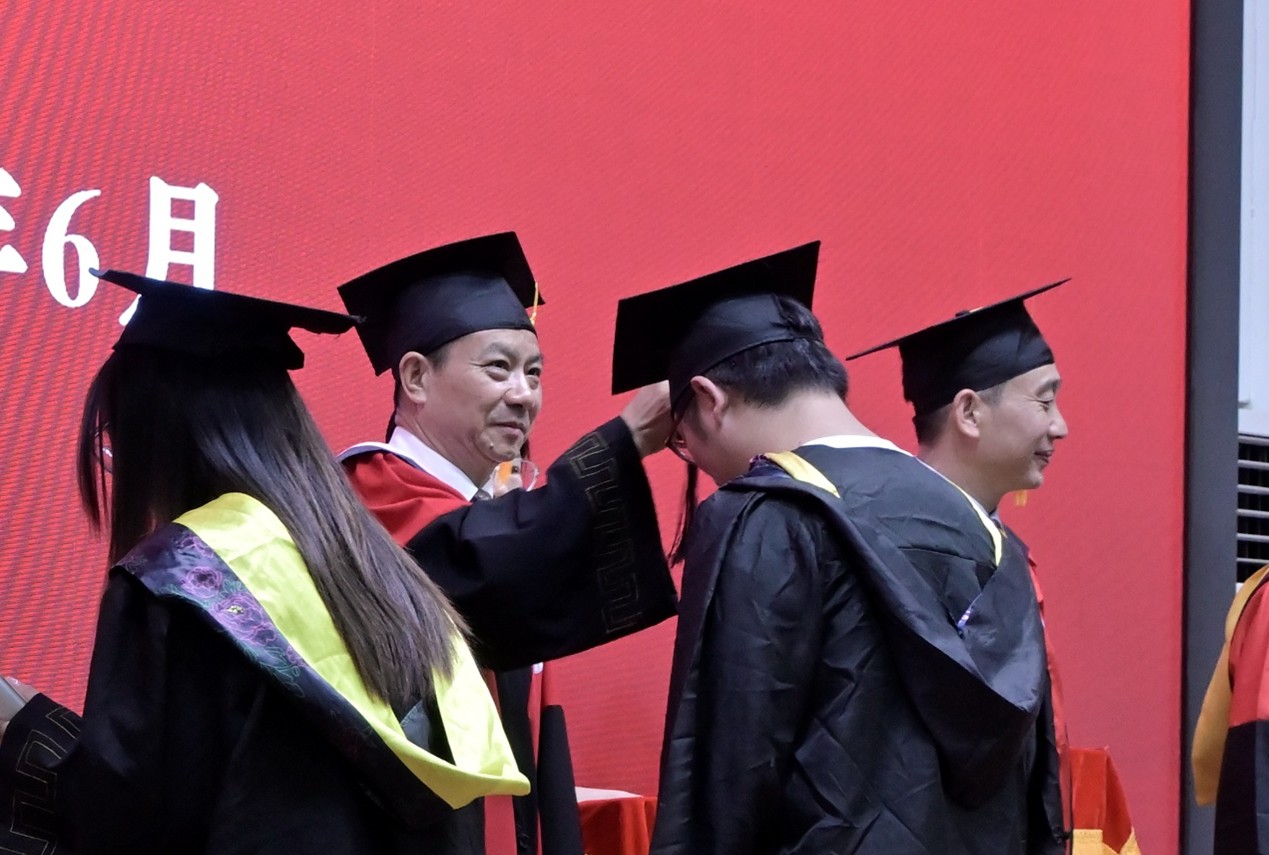 6月16日,学院毕业典礼暨学位授予仪式隆重举行。党委常委、党委组织部部长、党委统战部部长李应军,经理罗明璋,副经理魏勇、蒋涛、周箩鱼,党委副书记张晨露等莅临现场,学院全体辅导员、毕业生家长代表参加典礼,230余名博士、硕士和本科毕业生代表齐聚一堂,在师长亲友的共同见证下,导师们为毕业生逐一拨穗正冠,流苏从右至左的摆动,见证着学子们从青涩到成熟的蜕变,标志着人生新篇章的开启。