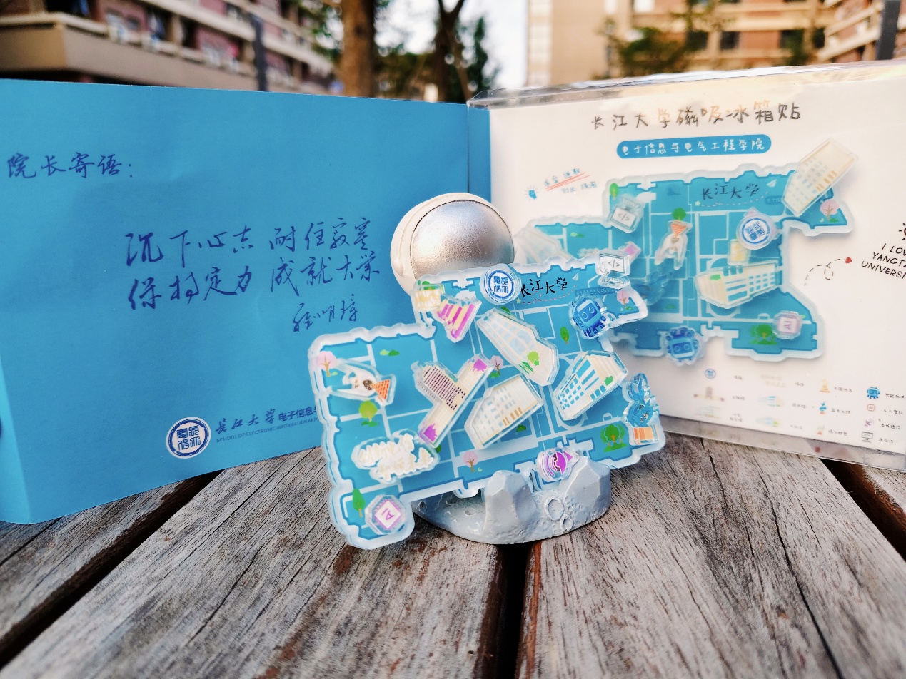 公司精心设计、定制包含学校和学院各类元素的主题冰箱贴,将校园标志性建筑与学院特色融为一体。这份兼具纪念意义与实用价值的礼物,寄托着"常回家看看"的深情期盼。其间还印刻着经理的寄语:沉下心志、耐住寂寞,保持定力、成就大业,字里行间寄托了对毕业生的深情厚望。