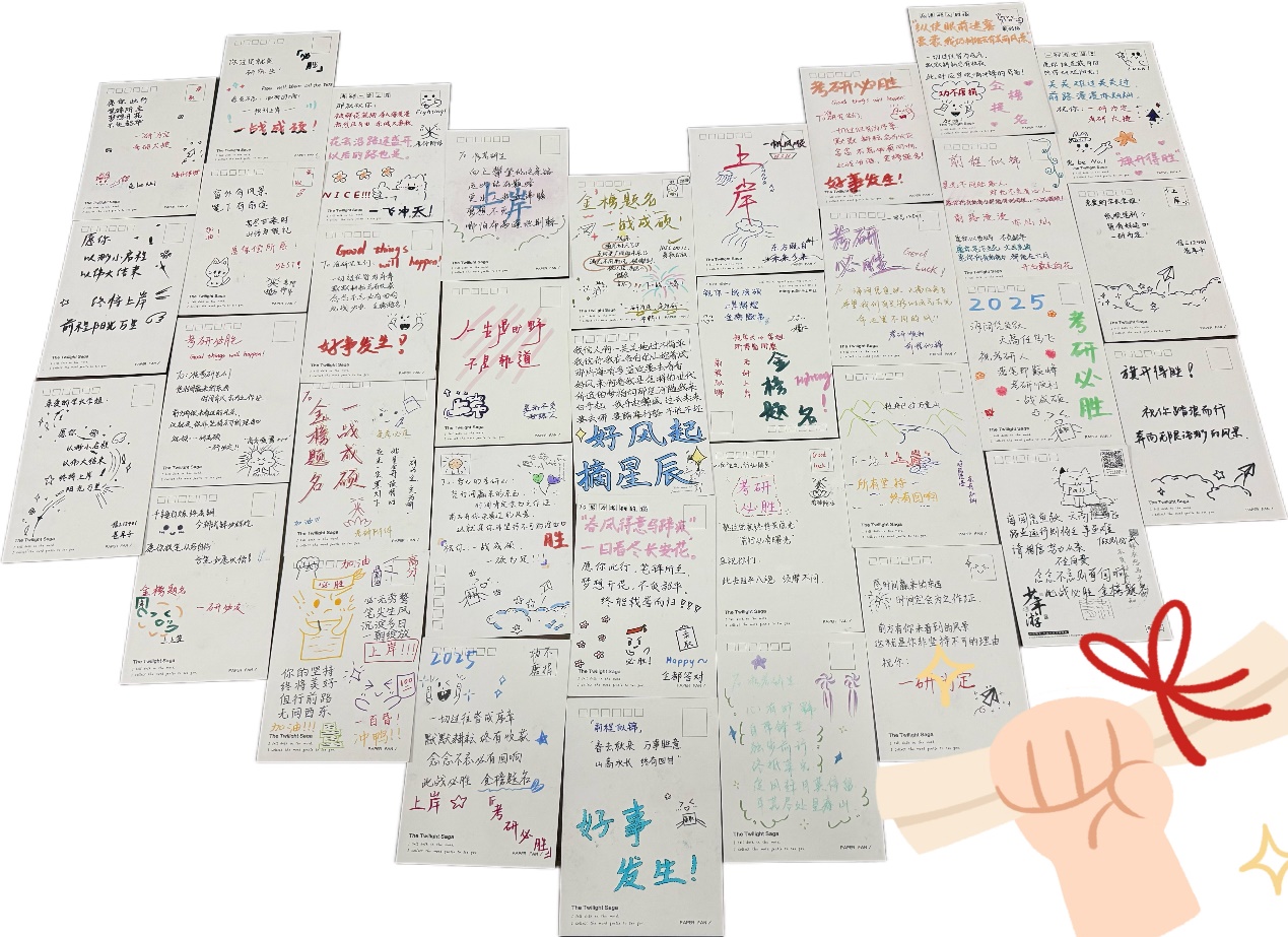 为给2026届考研学子加油鼓劲,学院低年级员工自发开展手写书信送祝福活动。大家执笔抒怀,将暖心鼓励、真诚祝愿落于笔尖,一封封书信承载着同窗情谊,为冲刺阶段的学长学姐注入温暖力量,让大家感受纸笺上的育人温度,让备考之路不再孤单。