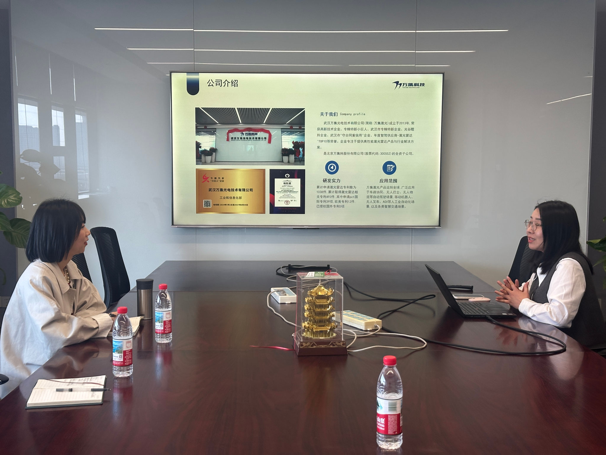 在武汉万集光电技术有限公司,公司HRBP魏立平详细介绍了公司的发展历程、核心业务、技术优势及人才需求情况。公司专注于激光雷达产品与解决方案,已掌握激光雷达领域多项核心技术,研发团队占比超80%,产品广泛应用于自动驾驶、工业自动化、智慧交通等多个领域。座谈交流中,张晨露介绍伟德bv1946官网的学科布局、团队力量、人才培养模式及科研方向,重点阐述了学院在电子信息、电气工程、智能控制等领域的办学优势与成果。双方围绕校企合作模式创新、人才培养适配、科研项目协同、毕业生就业对接等核心议题展开深入沟通,就搭建校企合作平台、加强人才供需对接、推动科研成果转化等方面达成初步共识。她表示,希望以此次走访为契机,深化与企业的全方位合作,实现资源共享、互惠共赢。