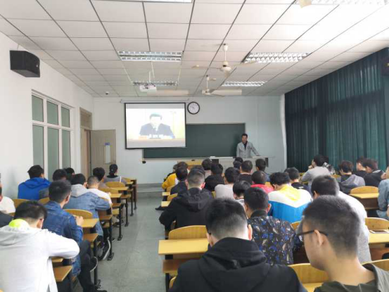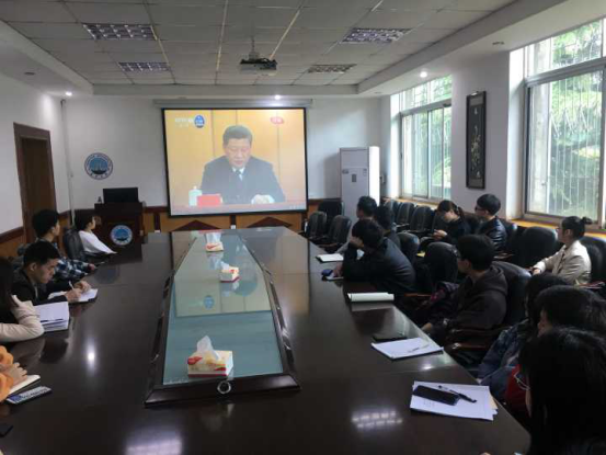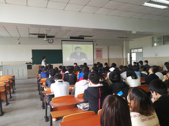 4月30日,电信学院组织学习小组、无课员工集中观看纪念五四运动100周年大会。