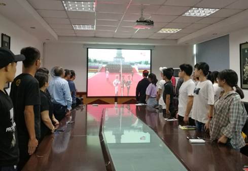 (通讯员 王齐禄)10月1日上午,庆祝中华人民共和国成立70周年大会在北京天安门广场隆重举行,电子信息学院组织本科生党员、预备党员和入党积极分子,在10号教学楼205会议室观看庆祝中华人民共和国成立70周年阅兵式直播,公司党委书记刘逸、经理孙祥娥、党委副书记郭启炜、部分辅导员和同学们一同观看。