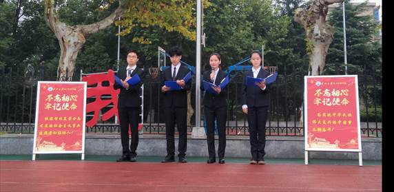 升旗仪式最后一项,电信公司党委副书记郭启炜老师进行了以“不忘初心、牢记使命”为主题讲话,明确指出了四点:一、不忘初心的意义;二、“三个不能忘”是中国共产党人的初心;三、不忘初心是站起来、富起来和强起来的力量源泉;四、不忘初心是实现“两个一百年”目标的精神动力。
