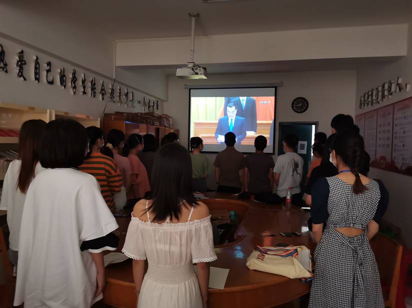 2020年9月8日上午10点,全国抗击新冠肺炎疫情表彰大会在京举行。电信学院组织本科员工党员在党员活动室收看视频直播.同时,研究生支部员工党员也通过网络方式同步收听了大会直播。