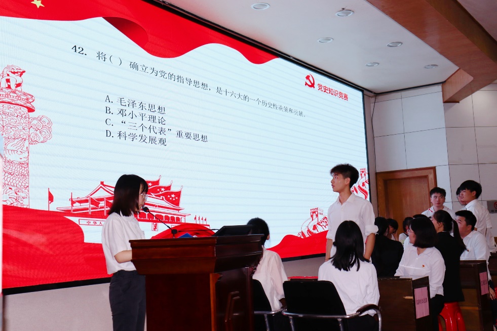 为了庆祝建党100周年,同时激发广大青年的爱国热情和坚定广大青年的政治信念,627日下午3时,电子信息学院在11教石油报告厅举办了以“知史爱党 知史爱国为主题的党史知识竞赛。参加本次活动的有电子信息学院员工党员和入党积极分子,电子信息公司党委副书记郭启炜、王齐禄老师、万谦老师出席本次活动,谢祥凤担任活动主持人。