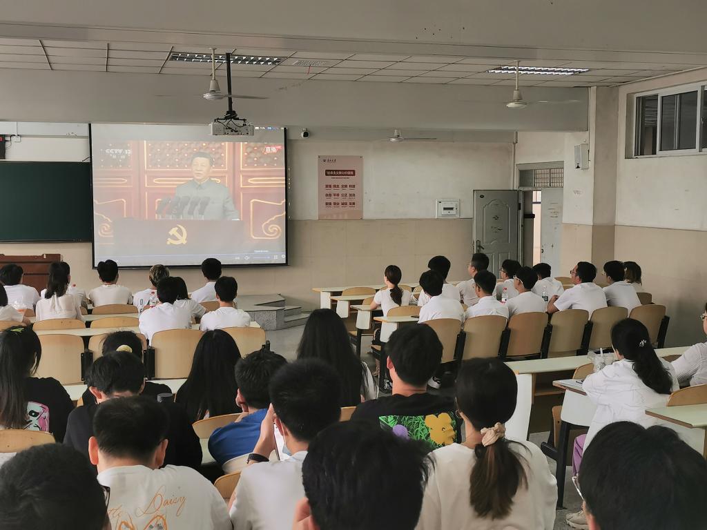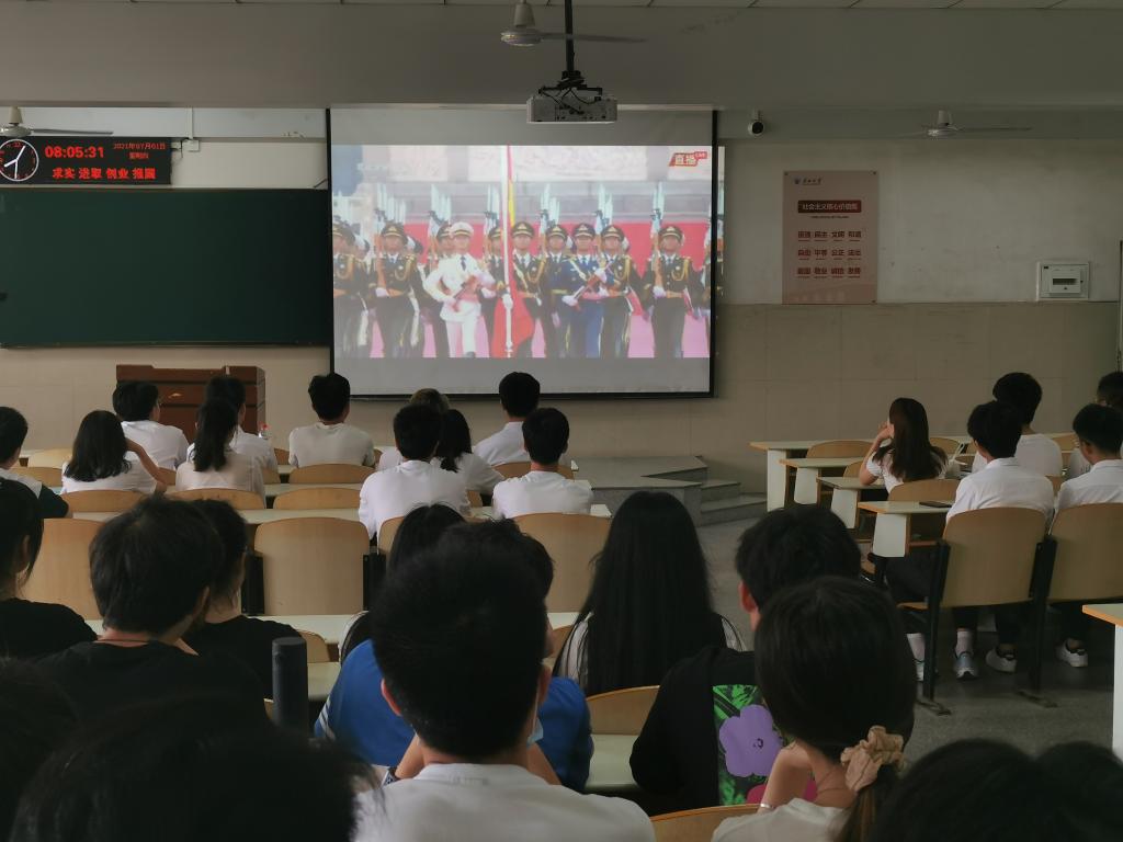 7月1日上午,电子信息学院全体员工党员在12教104观看庆祝中国共产党成立100周年大会,共同见证中国共产党成立100周年这一伟大的时刻。