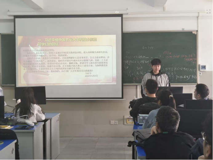 5月26日上午,电气12102团支部在12教303举行班团会。在班团会上,同学们学习了习近平总书记给中国农业大学科技小院同学们的重要回信精神,开展“学习监察法 争做廉洁人”专题学习。王梦杰同学采用新媒体展现形式,全方位地为大家介绍习近平新时代中国特色社会主义思想,明确广大青年应当毫不动摇坚持和巩固党的领导地位和执政地位;最后,她还介绍了“青年大学习”网上主题团课学习,督促同学们响应国家号召,积极开展学习,并建议大家多多参加社会志愿活动,多为社会做事,为国家做事。