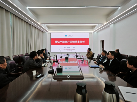 会议首先由何宗彬、张宫两位老师做了《新近随钻核磁测井数据处理进展》的报告,两位老师针对核测井的发展现状,核磁成像技术在测井实践中的应用和前景分析,以及应用于随钻技术上存在的技术壁垒,随钻核磁成像数据处理方法等问题进行了汇报。接着,黑创老师做了《随钻声波测井关键技术探讨》的报告,他针对随钻测井过程中声波测量和接收的难点、隔声体的设计原理与实现方法、随钻测井声学参数的应用三个问题进行了汇报。最后,由夏振华老师做《连续波泥浆脉冲发生器相关问题》的报告,他分析了连续波泥浆脉冲传输系统的重点和难点问题,提出了一种适合于电机控制实现的调制方法、研究了基于深度学习的解调技术。
