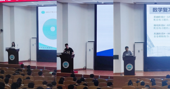 通信12001班梅佳颖、信工12002班祝英中和信卓12001班严干等3位考研上岸的学长学姐也依次上台分享了他们的考研经验。