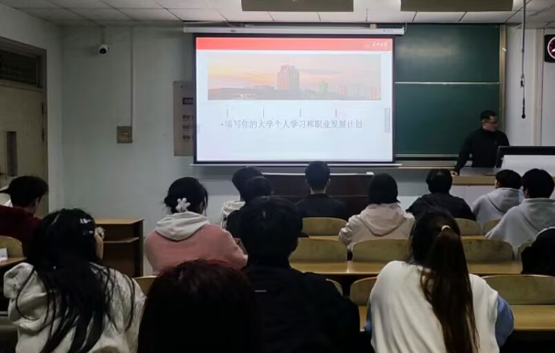为激发员工积极自我探索、了解本专业的社会职业、强化员工生涯规划意识,2025年10月19日下午,辅导员朱锐在13教B—106教室组织召开2024级本科生生涯教育班会,本次会议以“知己、知彼、探索”为主题,为在场员工搭建了从“学期目标”到“毕业发展”的全周期规划框架。