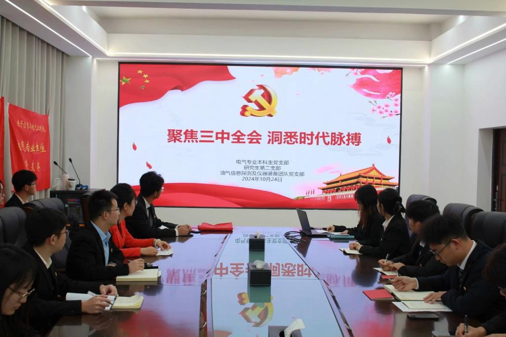 (通讯员 吴思哲/文 袁慧琳/摄)“这次主题党日活动别开生面,紧密结合党的二十届三中全会精神,为大家提供了宝贵的学习机会,大家受益匪浅。”“本次党建共建活动,不仅增默契,更显实效。”10月24日下午,学院电气专业本科生党支部与研究生第二党支部、油气信息探测及仪器装备团队党支部联合开展“聚焦三中全会 洞悉时代脉搏”的主题党日活动,让员工通过这堂生动的“大思政课”更加明白个人命运与国家发展的紧密相连,激发为实现中华民族伟大复兴的中国梦而努力奋斗的决心和信心。