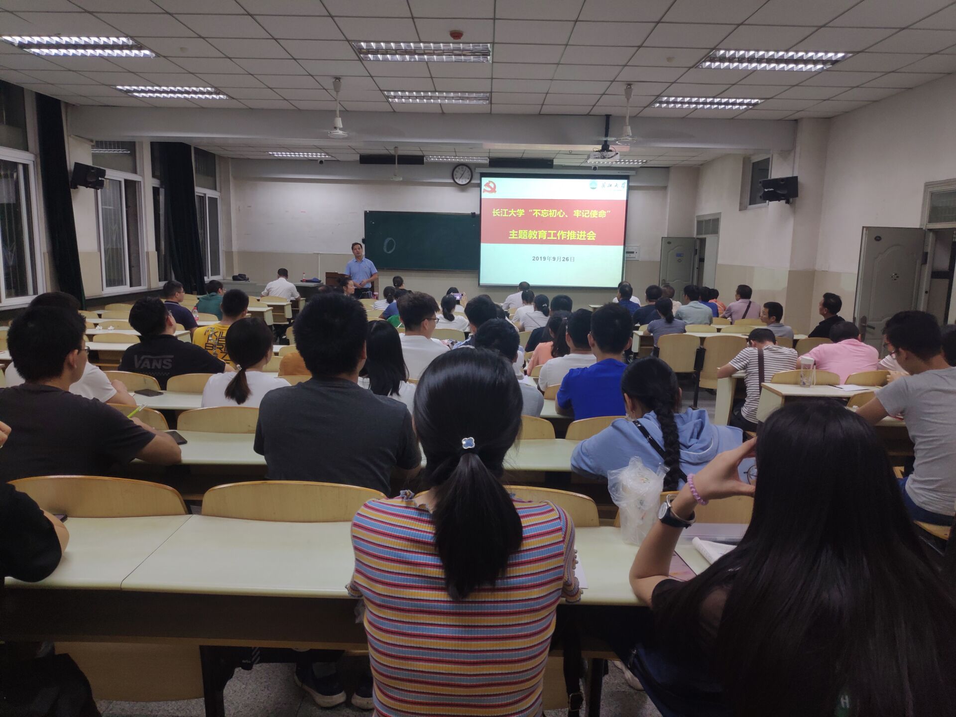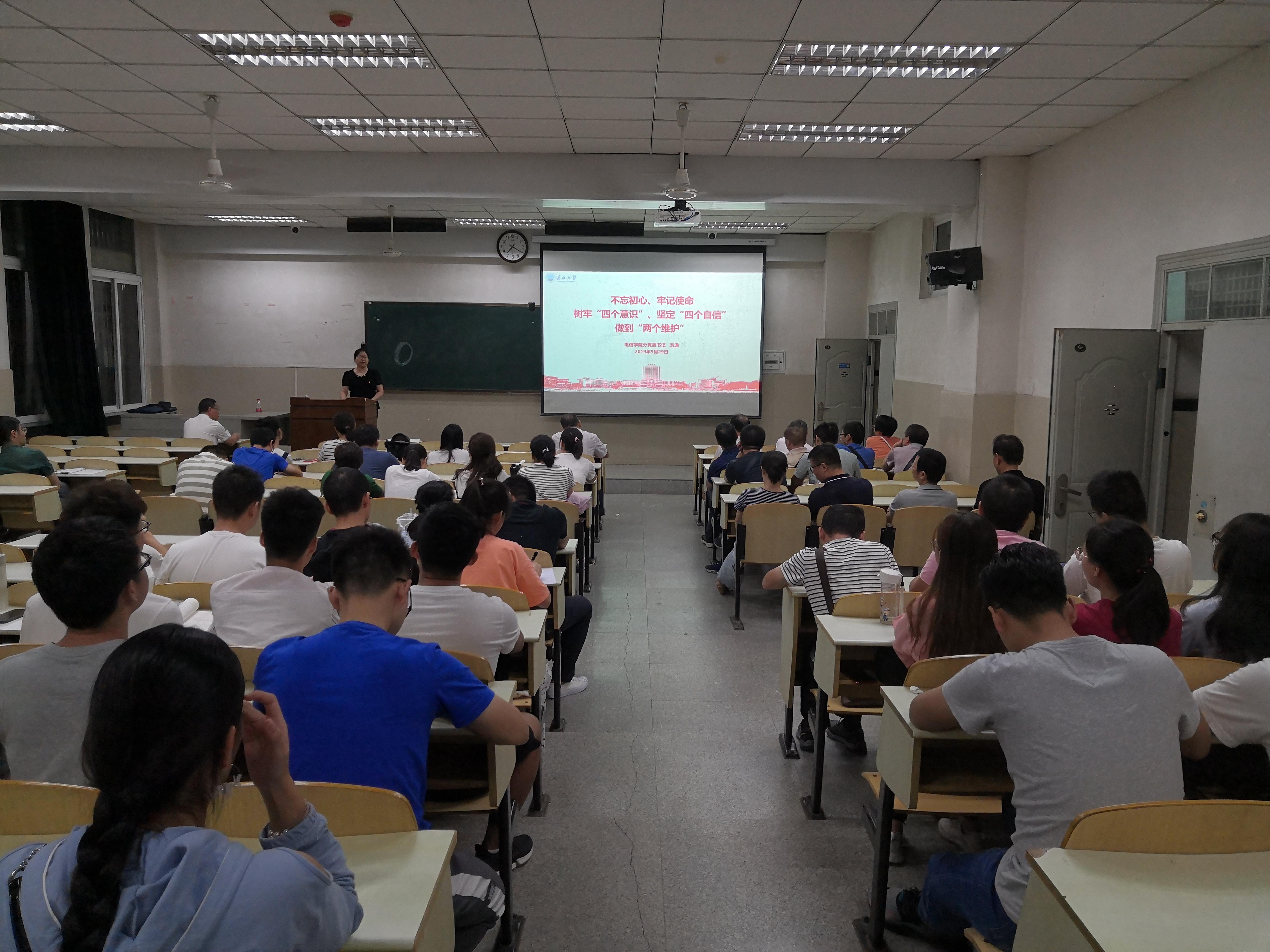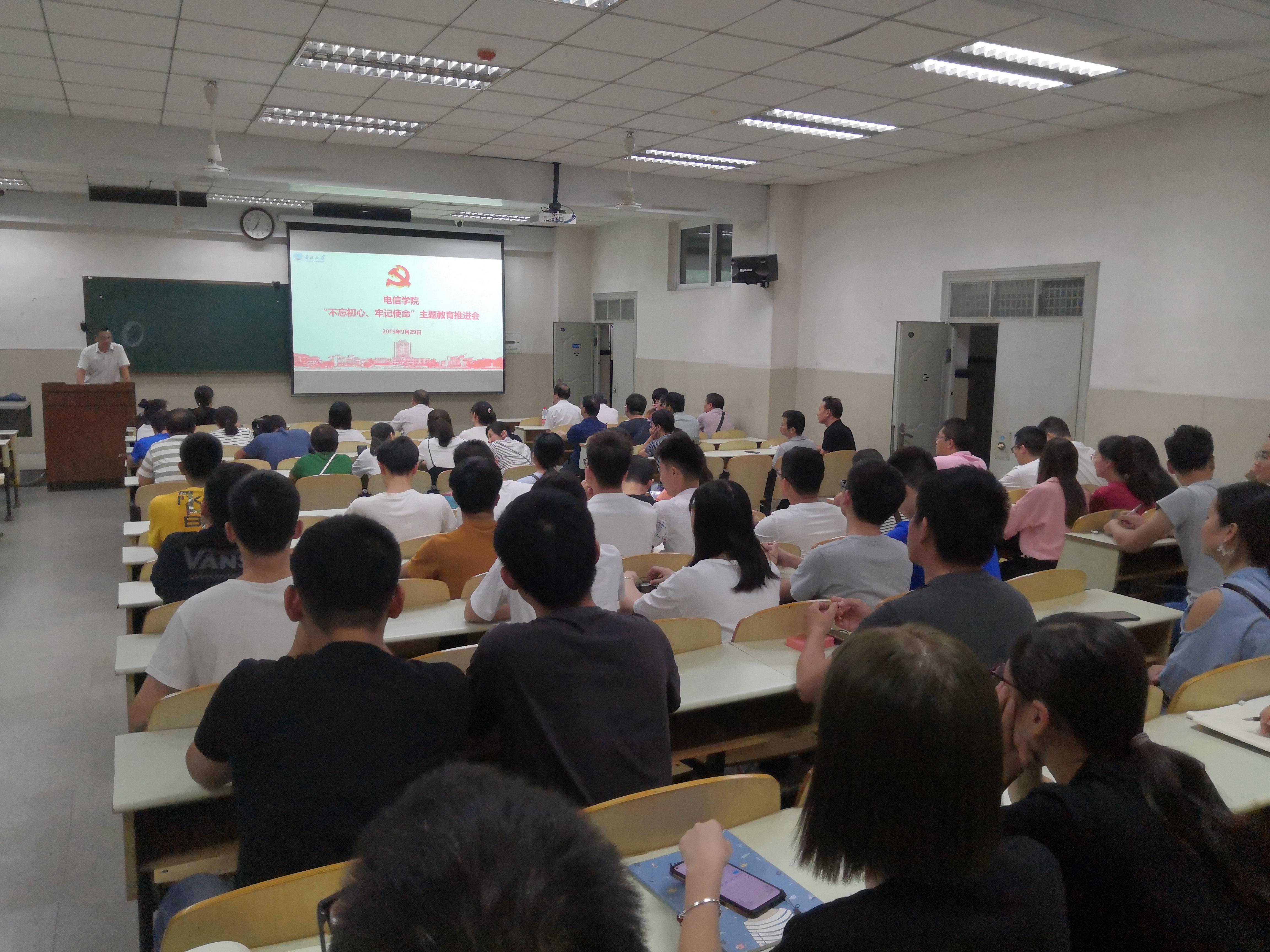 为使主题教育更加扎实有效地开展、取得实实在在的效果,9月29日晚上7点,在12教101教室,电信学院分党委召开全公司党员大会,深入推进“不忘初心、牢记使命”主题教育,对主题教育工作再部署。分党委书记刘逸、副经理蔡昌新和100多名师生党员参加,会议由分党委副书记郭启炜主持,经理孙祥娥列席会议。