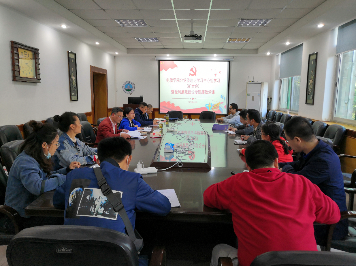 10月22日下午2:10,电信学院分党委理论学习中心组在10教205召开理论学习扩大会议暨党风廉政建设专题廉政党课,分党委书记刘逸主持会议,分党委理论学习中心组全体成员、党支部书记和系主任参加了本次学习。