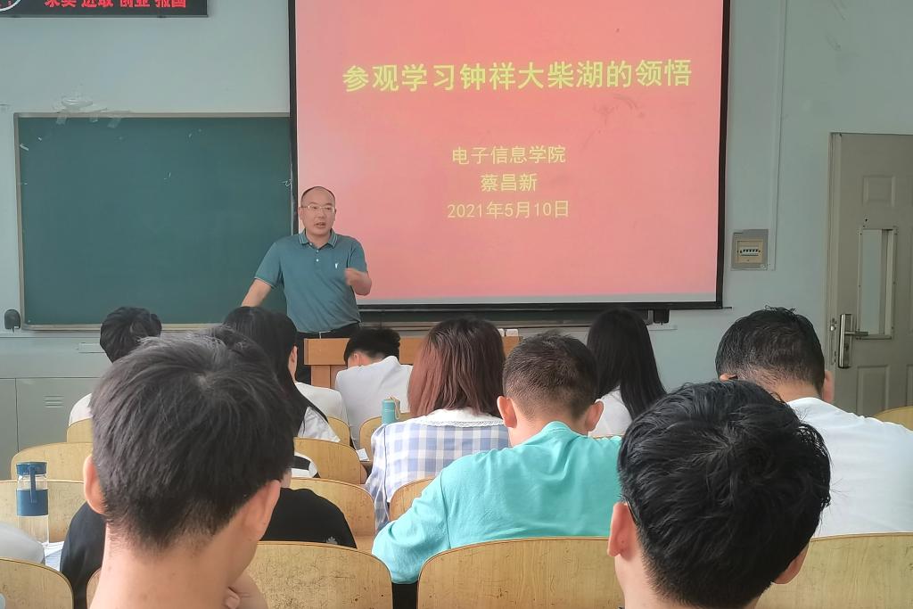 为拓展丰富研究生党课知识,发扬柴湖移民自力更生、艰苦奋斗的精神,2021年5月10日,电信学院副经理蔡昌新为2020级研究生讲授钟祥大柴湖的相关党课。
