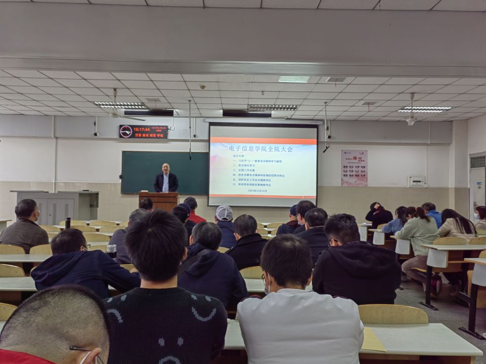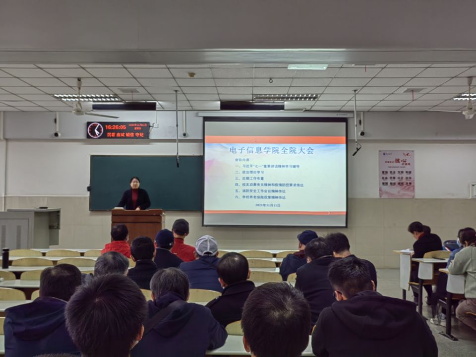 (通讯员 胡桐/文 胡桐、滕亚楠/摄)为了深入学习领会习近平总书记“七一”重要讲话精神,同时对全体党员、预备党员以及入党积极分子进行政治理论学习培训,电子信息学院于11月11日下午14:00在伟德bv1946官网东校区12教302召开全院大会组织学习习近平“七一”重要讲话精神。参加本次会议的人员除了学院全体教职工,还有全体员工党员、预备党员以及入党积极分子。大会由公司党委书记刘逸主持。