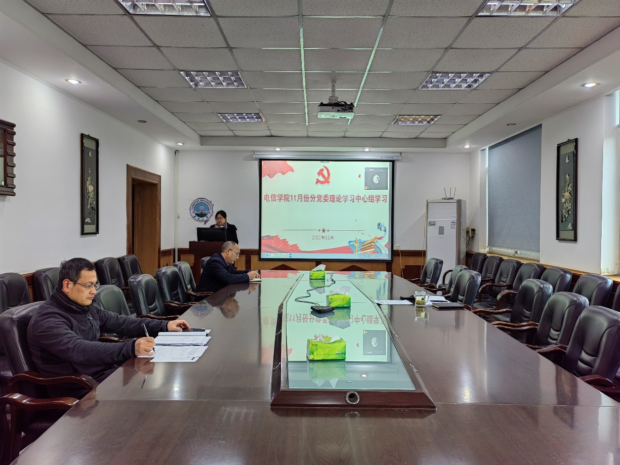 11月22日上午,电信学院分党委理论学习中心组在10教205会议室组织集中学习,本次学习由分党委书记刘逸主持,采取线上线下结合的方式,中心组全体成员参加学习活动。