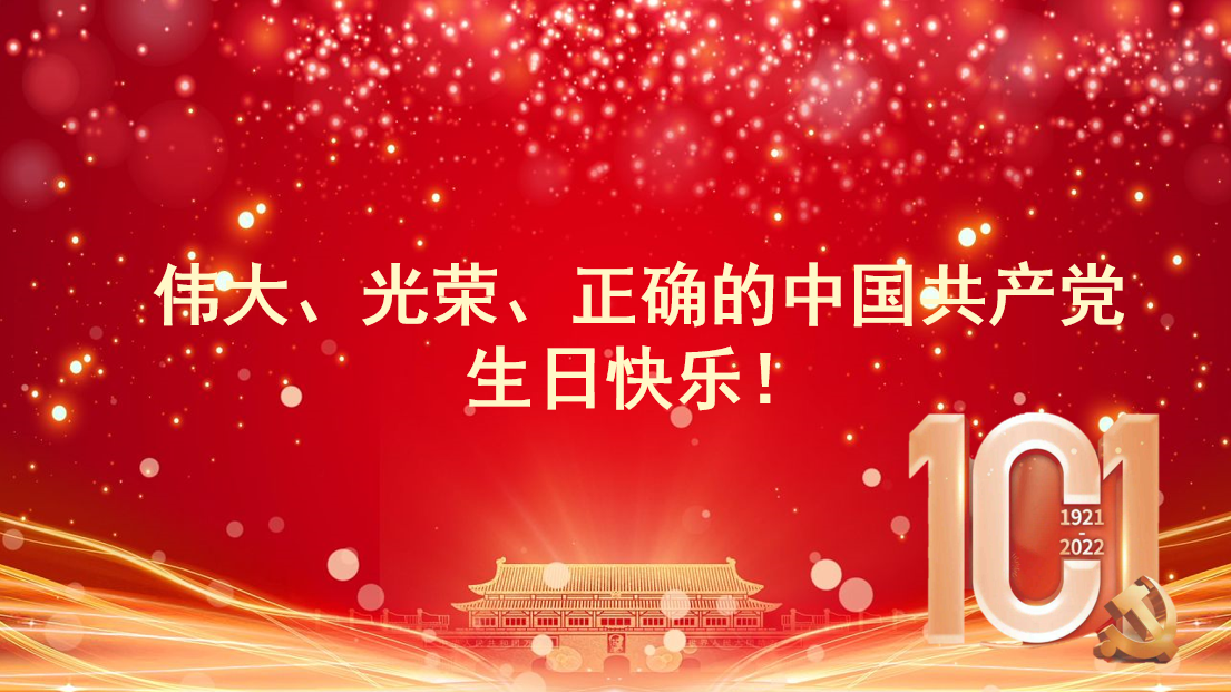 今年是中国共产党成立101周年,也是党的二十大即将召开之年,在这个特殊时刻,祝福伟大、光荣、正确的中国共产党生日快乐,希望全体党员同志以实际行动贯彻落实党中央各项部署,以优异成绩迎接党的二十大胜利召开。