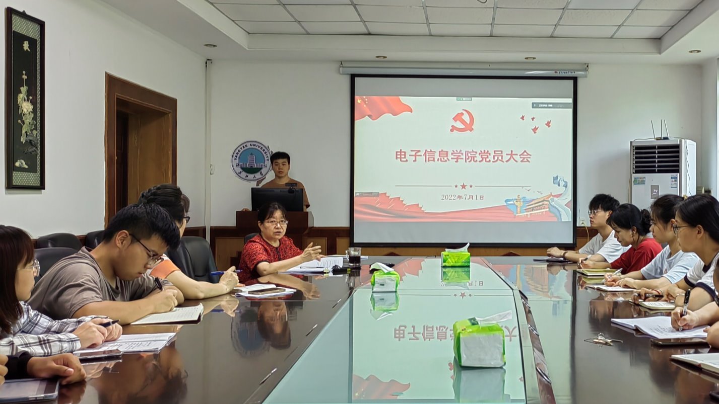 7月1日下午,电子信息学院庆祝中国共产党成立101周年党员大会暨书记讲党课活动在十教205会议室举办。分党委书记刘逸、各支委会委员线下参会,其他党员通过腾讯会议线上参会。会议由党建秘书李蒙主持。