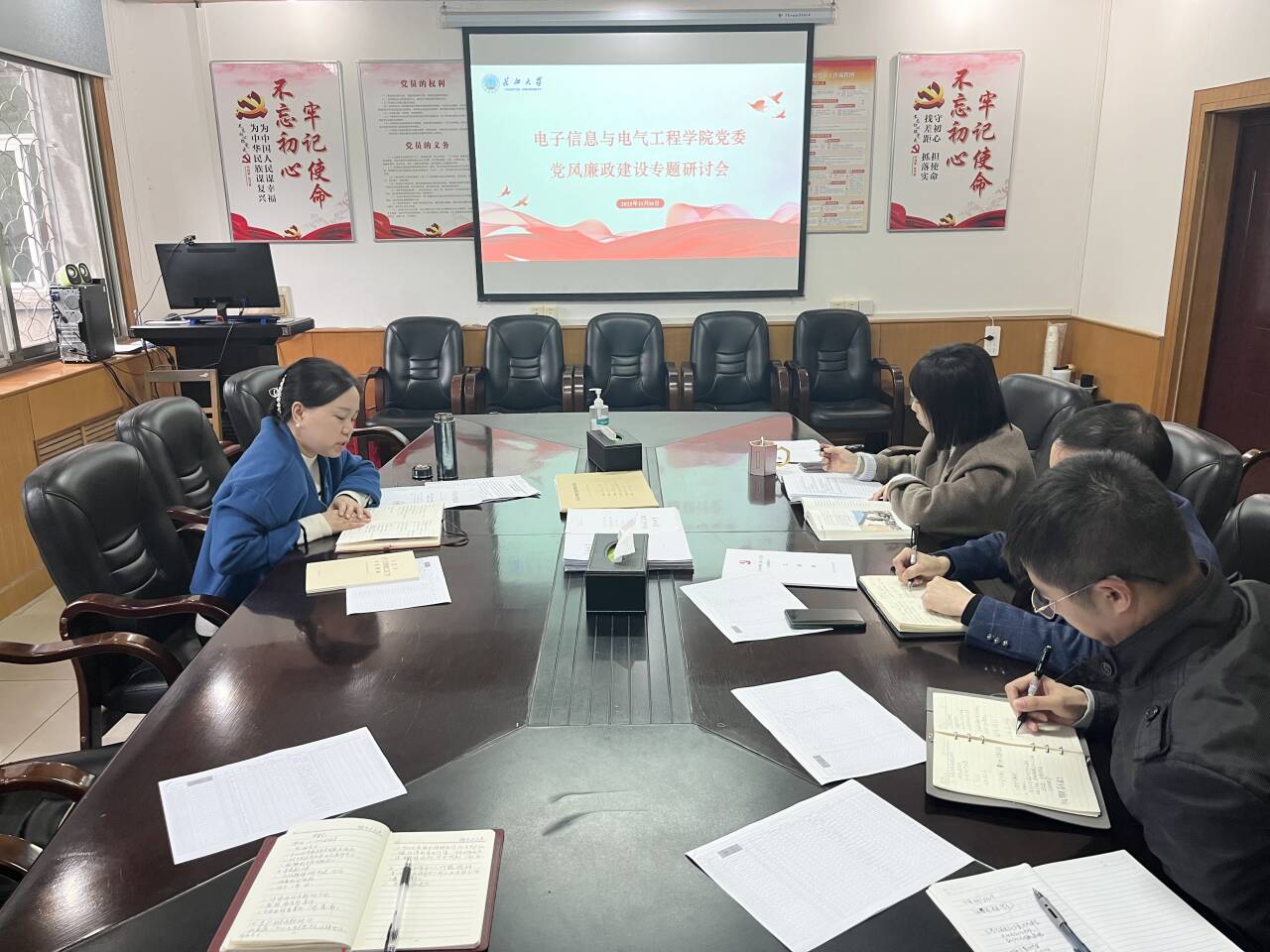 11月10日下午,公司党委组织开展2023年下半年党风廉政与师德师风建设专题研讨会。副经理魏勇、周箩鱼,党委副书记张晨露,经理助理蒋涛参加学习研讨,会议由党委书记郭梅主持。