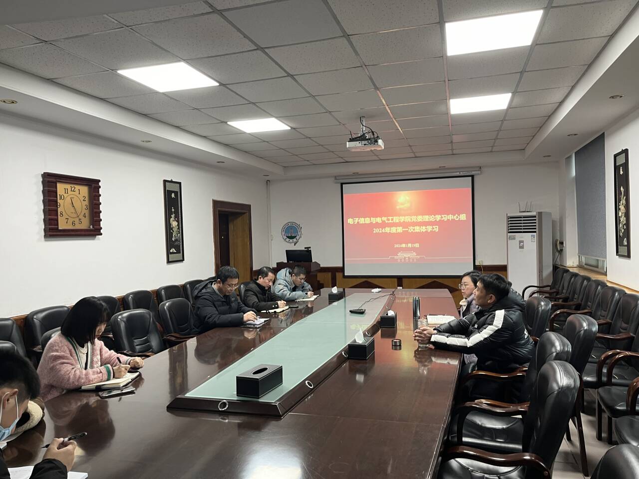 1月19日上午,公司党委理论学习中心组在10教205会议室召开2024年度第一次集体学习会,党委书记郭梅主持会议。