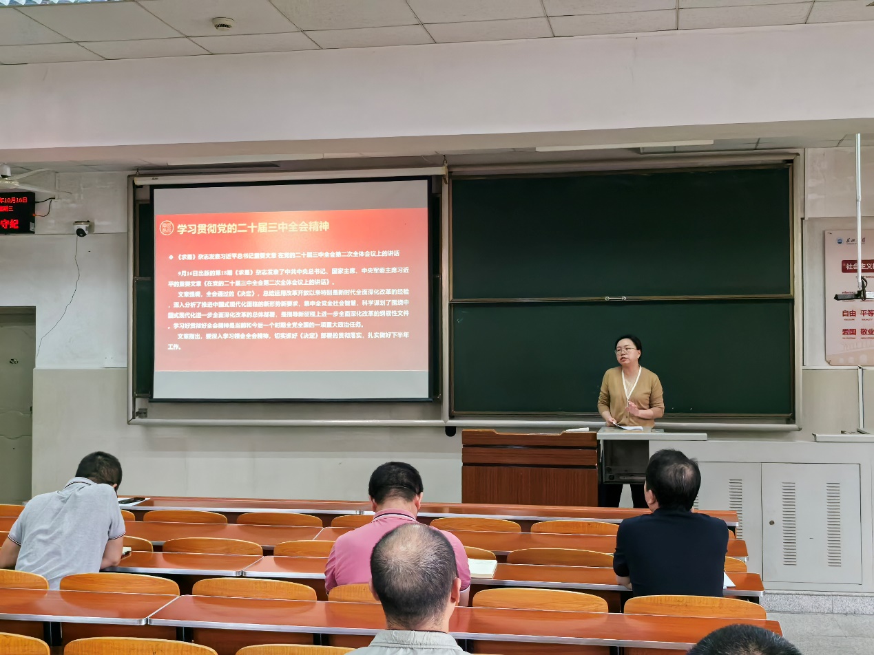 10月16日下午,学院召开教职工大会,党委书记郭梅带领大家集中学习了习近平总书记重要讲话精神,主要包括:习近平总书记在全国教育大会上的讲话、习近平总书记在全国民族团结进步表彰大会上的重要讲话、习近平总书记在中华人民共和国国家勋章和国家荣誉称号颁授仪式上的重要讲话、习近平总书记在庆祝中华人民共和国成立75周年招待会上的重要讲话、习近平总书记在党的二十届三中全会第二次全体会议上的讲话,还学习了《求是》杂志发表的习近平总书记重要文章《大力弘扬伟大爱国主义精神,把强国建设、民族复兴伟业不断推向前进》。