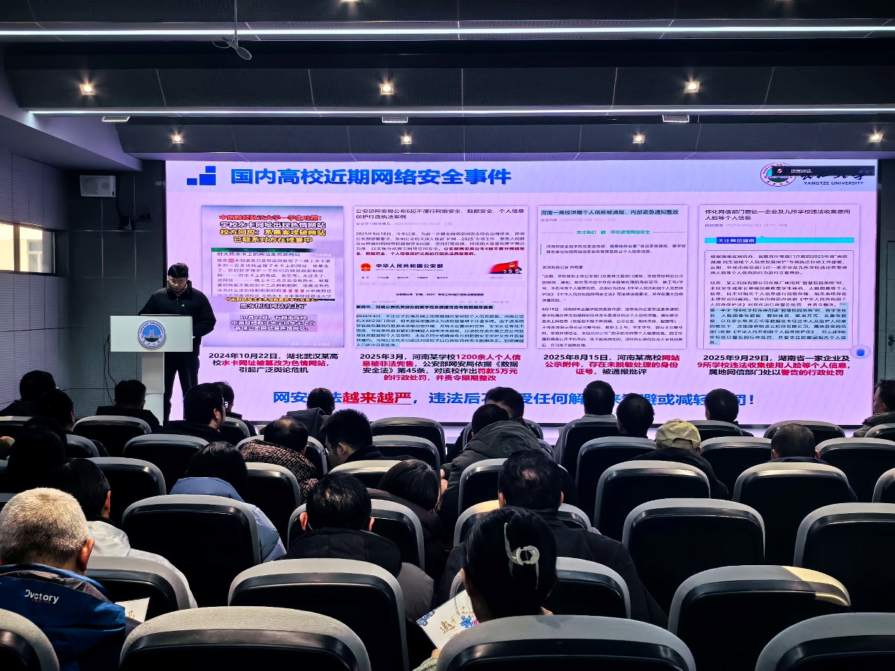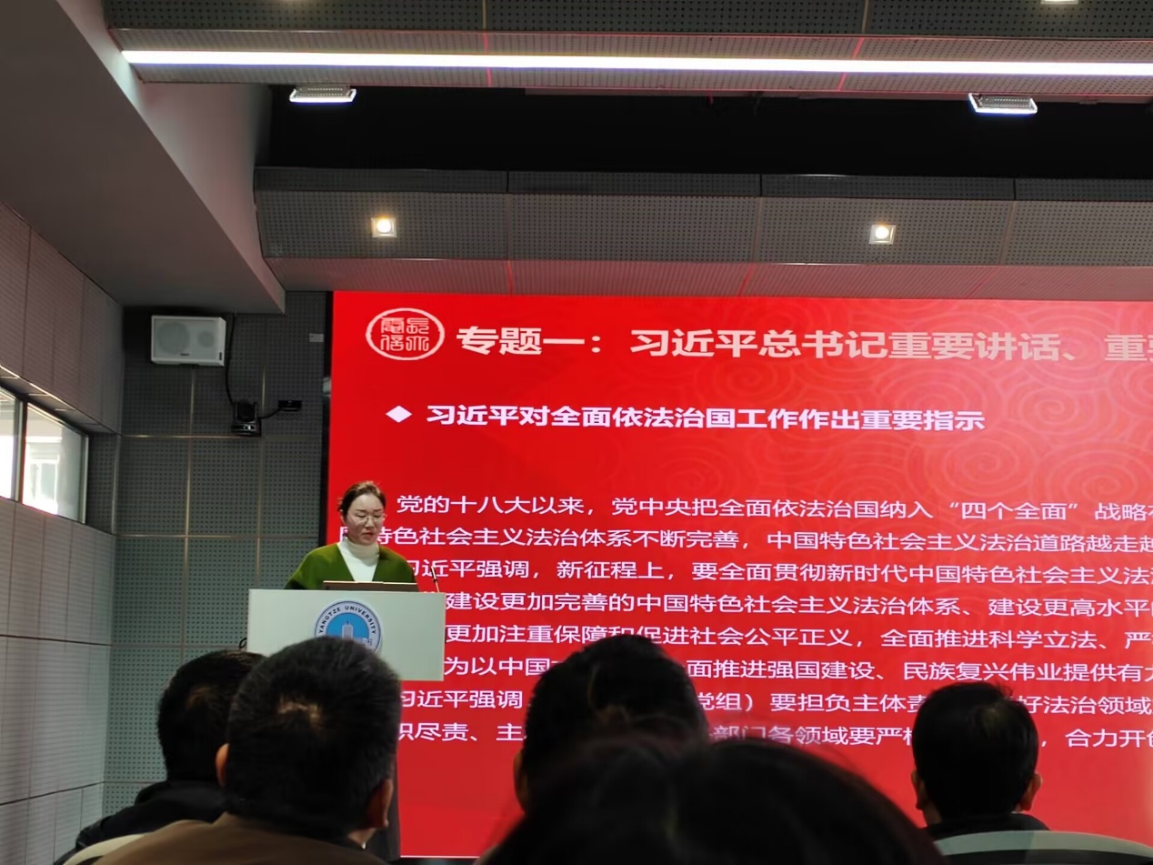 12月26日下午,学院在16教A313举行教职工大会,党员代表李山山老师在会上带领全体教职工开展政治理论学习。会上集中学习了习近平总书记在中共中央举行纪念胡耀邦同志诞辰110周年座谈会上的重要讲话、习近平总书记对全面依法治国工作作出重要指示、《求是》杂志发表习近平总书记重要文章《推进党的自我革命要做到“五个进一步到位”》《因地制宜发展新质生产力》、习近平总书记在广东考察时关于深入学习宣传贯彻党的二十届四中全会精神的重要指示批示精神以及习近平总书记在浙江工作期间关于意识形态工作的重要论述和习近平总书记在中共中央政治局第二十三次集体学习时的重要讲话精神,还学习了《中共伟德bv1946官网委员会关于深入学习宣传贯彻党的二十届四中全会精神的通知》等内容。学习结束后,学校互联网与信息中心有关老师向全体教师开展了网络信息安全知识宣讲。