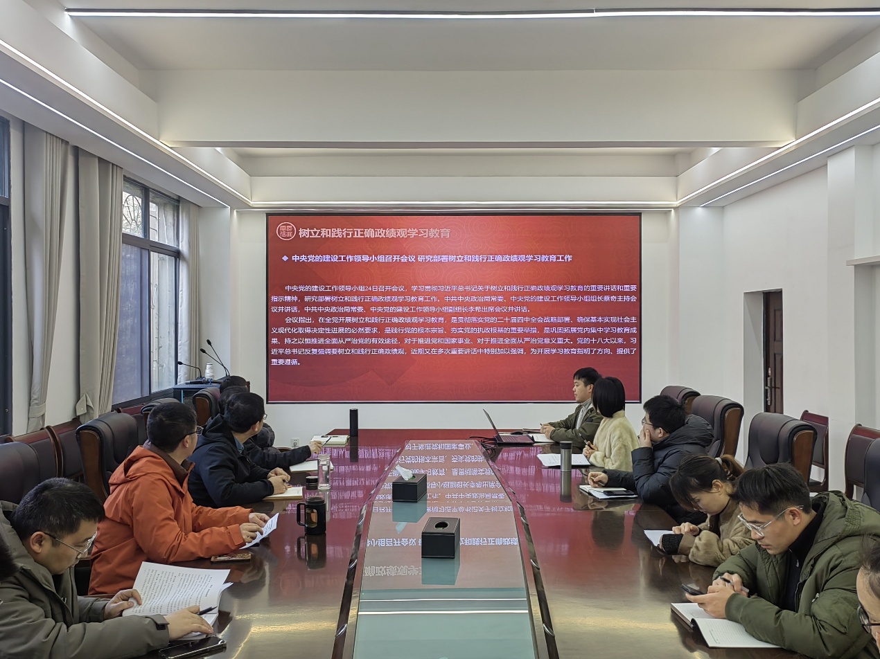 会议传达了中央党的建设工作领导小组关于研究部署树立和践行正确政绩观学习教育工作会议精神、省委常委(扩大)会议精神、公司党委有关会议精神,还集中学习了中共中央办公厅印发《关于在全党开展树立和践行正确政绩观学习教育的通知》,以及《求是》杂志发表的习近平总书记重要文章《让愿担当、敢担当、善担当蔚然成风》。学习结束后,与会人员还就“如何树立和践行正确政绩观”展开了交流研讨,魏勇、蒋涛作了重点交流发言。