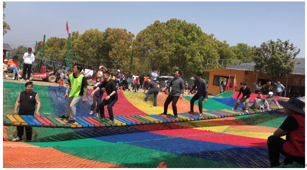 中午简餐之后,大家来到八岭山镇铜岭岗主体公园,行走在主体公园景区里,亭台楼阁、小桥流水、盆景花卉,构成了一幅浓淡相宜的恬静山水画。田野自然风光、村寨农家,一派春意盎然,大家前来赏花、踏青,乐享乡村之美。纯正的农家菜,旖旎的田园风光让大家流连忘返。还有各种娱乐项目,网红桥、荡秋千、小火车,大家都乐在其中。