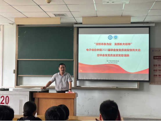 为深入推进学习贯彻习近平新时代中国特色社会主义思想主题教育,引导广大党员坚持以习近平新时代中国特色社会主义思想为指导,深入学习贯彻落实党的二十大精神,加强毕业生党员的理想信念教育、爱国爱校教育,激发毕业生党员的使命担当,6月8日下午,电子信息学院在13教C220组织毕业生党员开展以“凝聚青春力量 发扬长大精神”为主题的离校教育大会暨主题党日活动。公司党委副书记郭启炜、党建秘书李蒙、在校毕业生党员参加会议。