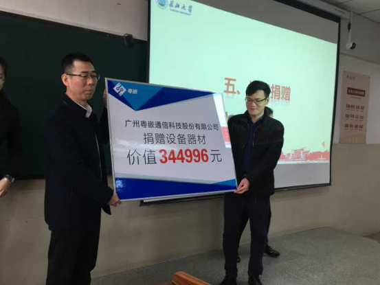 副经理李涛代表学院接受了粤嵌公司捐赠设备,约35万元。