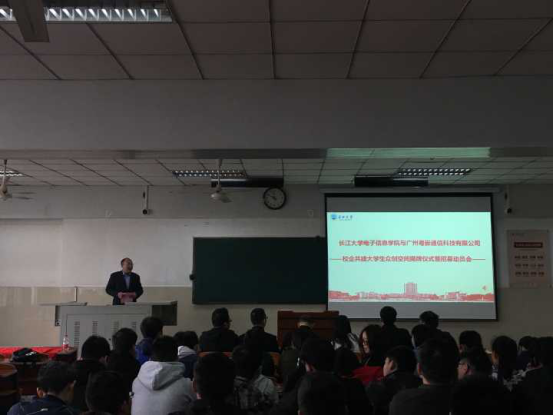 经理熊晓东发表动员讲话,他强调希望通过此次校企合作,提升电信学子的动手能力和实践能力,也希望电信学子在平常学习的过程中,不仅注重学好理论知识,也要注重自己创新能力的提高。