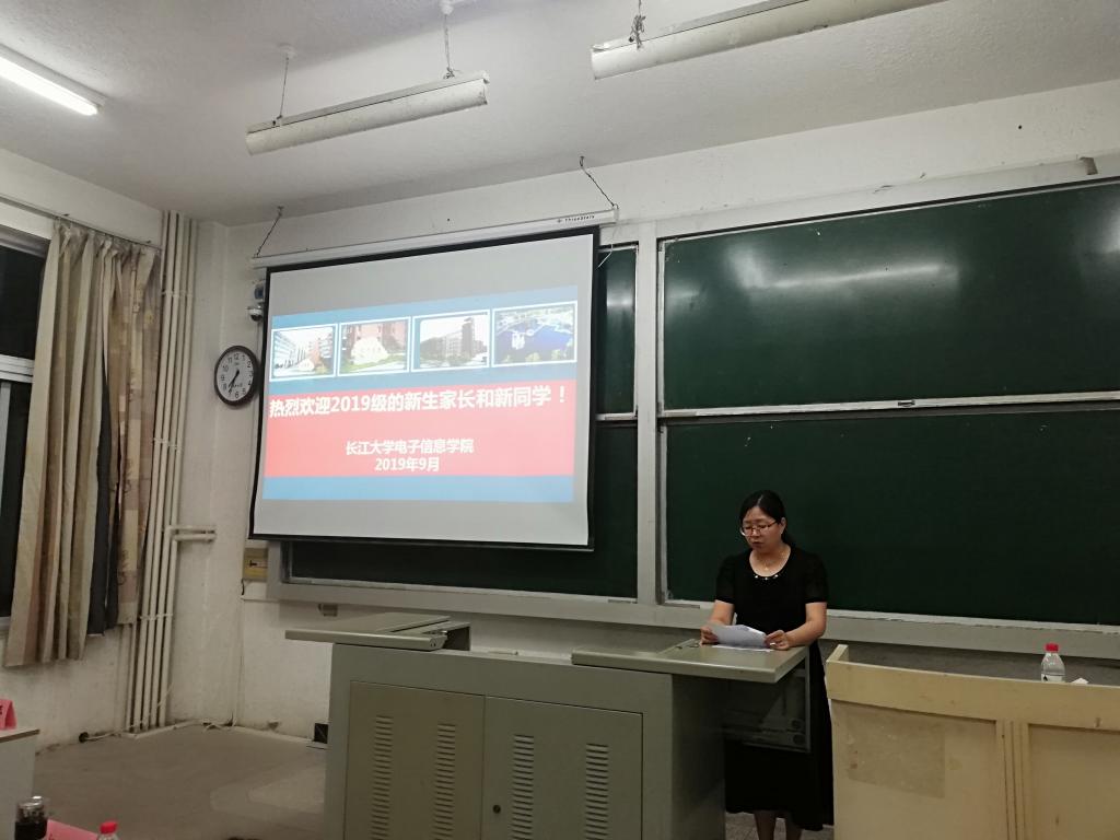 (通讯员孟珍伟 万谦)迎新季,为构建家校协同育人机制,2019年9月4日晚7:30分,电子信息学院在西校区7栋203召开了新生家长见面会,参加本次见面会的领导有公司党委副书记蒋光忠、学院经理孙祥娥教授、公司党委书记刘逸以及学院系主任、班主任、辅导员和170多名新生家长们,见面会由公司党委副书记郭启炜主持。