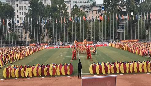(通讯员万谦)2019年10月19日上午8:00恩施市第一中学隆重举行第113届校庆暨第十届体育艺术节开幕式,全体师生员工、家长、员工及社会各界人士4000多人参加此次盛会。伟德bv1946官网龙狮舞蹈队受邀参加了本次开幕式的文艺表演并观看校庆晚会。出席本次活动还有伟德bv1946官网、恩施州教育局、恩施市教育局、恩施市文化体育局,恩施州全体(市)县高中董事长等单位的领导和嘉宾。
