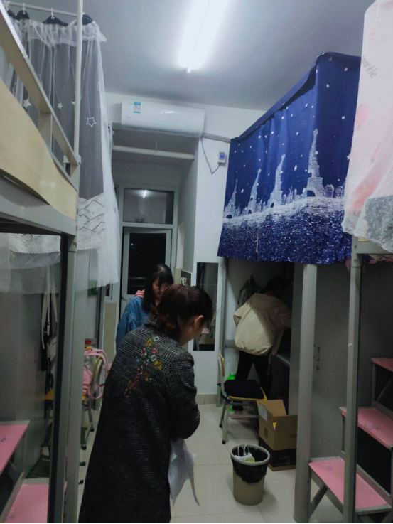 随后刘逸来到男生宿舍,查看男生宿舍情况,提醒安全注意事项。
