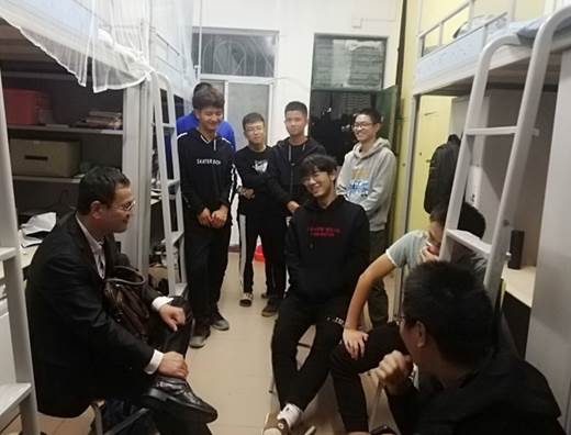 检查分为5个小组开展,年级辅导员为第一责任人,检查的范围覆盖全院员工宿舍。郭书记带领一年级辅导员和员工亲切的交谈,了解同学们生活中遇到的困难,讲解“六防”安全教育。一年级员工情况良好,无一人晚归。