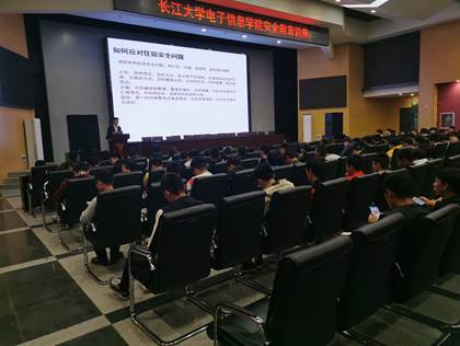 (通讯员沈川)2019年11月10日晚上7点伟德bv1946官网电子信息学院安全教育圆满完成,由电信学院辅导员万谦老师和文学院辅导员何宁老师共同主讲。