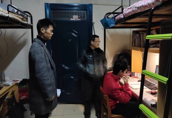 为做好消防安全工作,12月20日下午6:30,电信学院分党委副书记郭启炜带领全体辅导员以及员工干部深入员工宿舍进行第二次消防安全隐患排查工作。