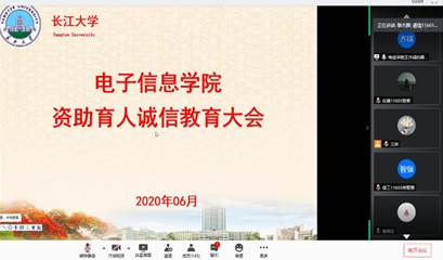 2020年6月4日,为引导老员工做一个有诚信、敢担当的人,树立诚信意识,2020年电子信息学院诚信教育主题班会因疫情防控工作的需要在线上召开。电信公司党委副书记郭启炜老师、电信学院2018级辅导员王齐禄老师、康玮老师、2019级辅导员万谦老师、电信学院2018级及2019级全体同学参加了此次主题班会。