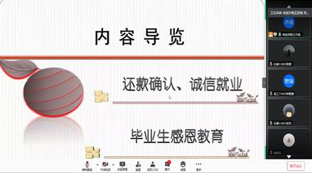 2020年6月13日,为确认员工联系方式等贷后管理工作,同时加强毕业年级员工的诚信就业教育,电子信息学院2020年还款确认、诚信就业主题教育班会以腾讯会议的形式在线上举行。电信学院2018级辅导员王齐禄老师、2016级辅导员艾林老师、2016级全体同学参加了此次主题班会。