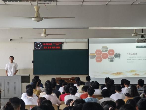 随后,熊佳豪进行征兵宣讲。他对参军入伍条件、征兵待遇、优待政策等内容作了详细介绍,号召广大毕业生积极参军入伍,并针对同学们提出的问题进行详细解答。